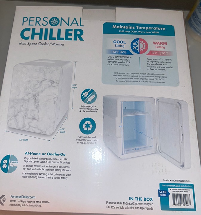Keep your drinks cold or your snacks warm with this Personal Chiller Mini Space Cooler/Warmer (4-liter capacity)! Perfect for your bedroom, office, dorm, or vanity setup. This lightweight and portable mini fridge is energy-efficient, quiet, and versatile — switch easily between cooling and warming modes at the flip of a switch.
