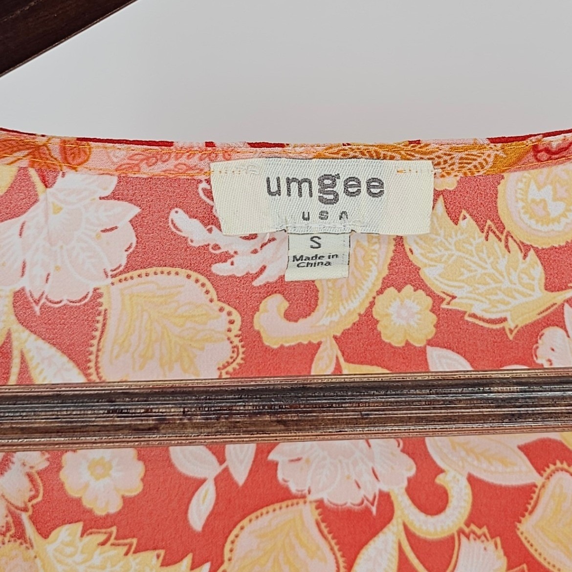 A vibrant patchwork kimono cardigan duster featuring a mix of floral and paisley prints in shades of orange, pink, and yellow. This flowing piece boasts a tiered hemline and wide, open sleeves, offering a bohemian and relaxed aesthetic. Perfect for layering over a simple top or dress for a stylish daytime outing or a casual evening gathering.